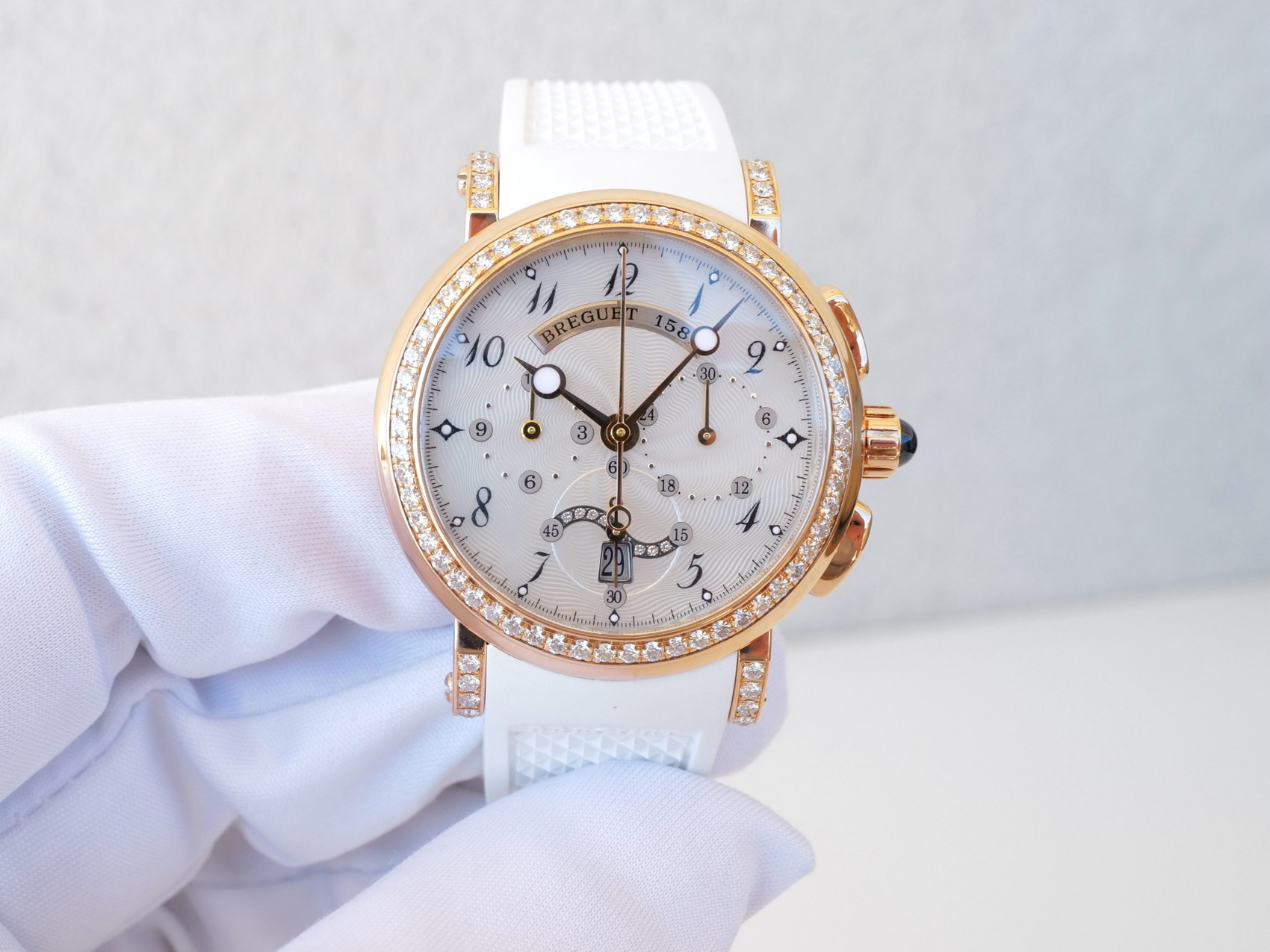 Breguet Marine Chronograph 18K Rose Gold MOP Dial Diamonds 35