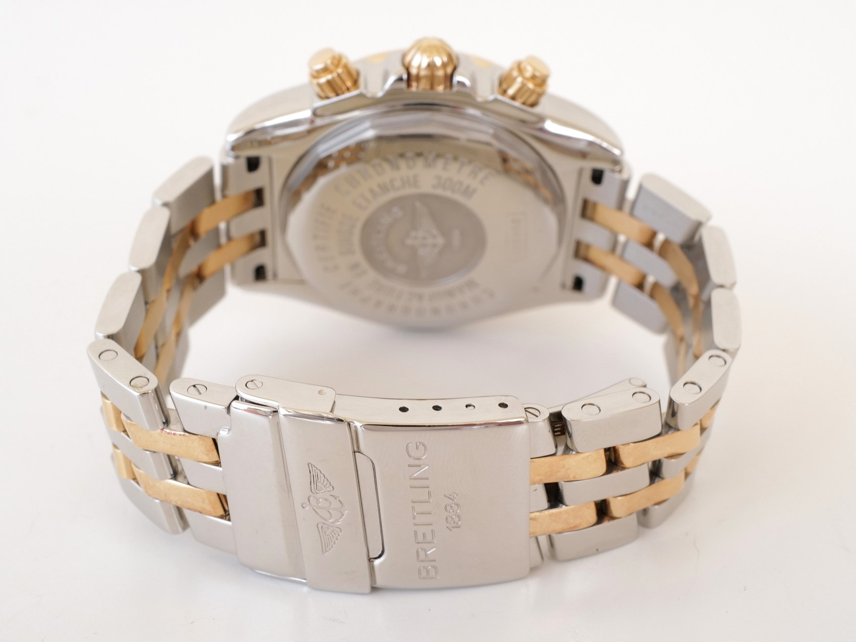 Breitling Chronomat Evolution Gold Steel Blue Roman Dial 44