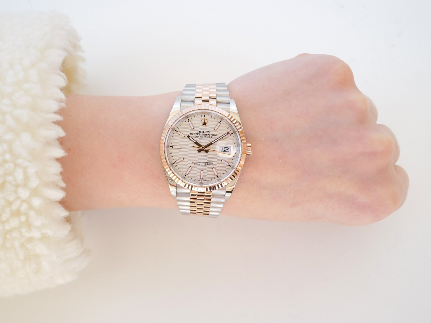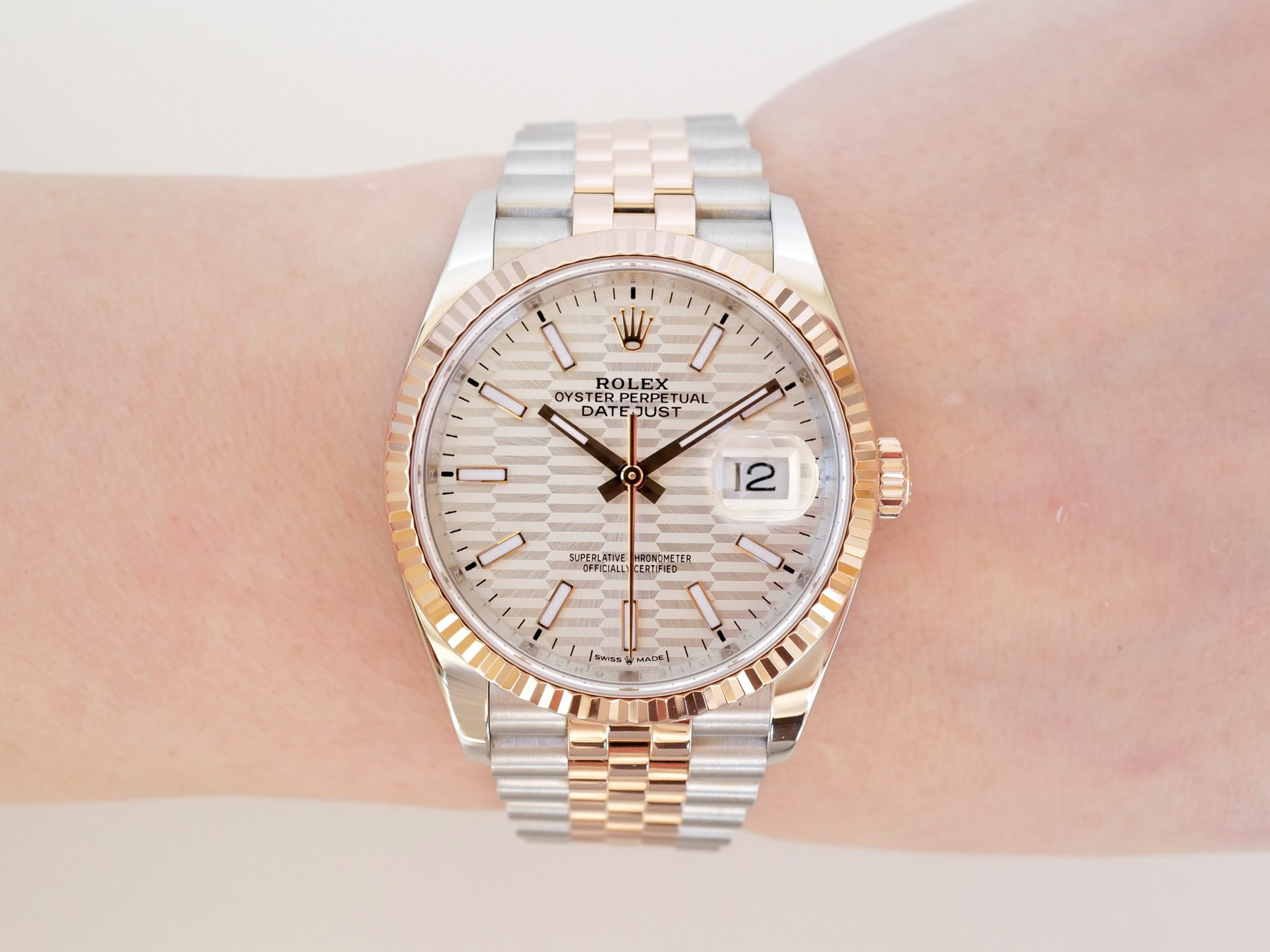 Часы Rolex Datejust 36 Jubilee Steel 18K Rose Gold Silver Motif Dial (2023)