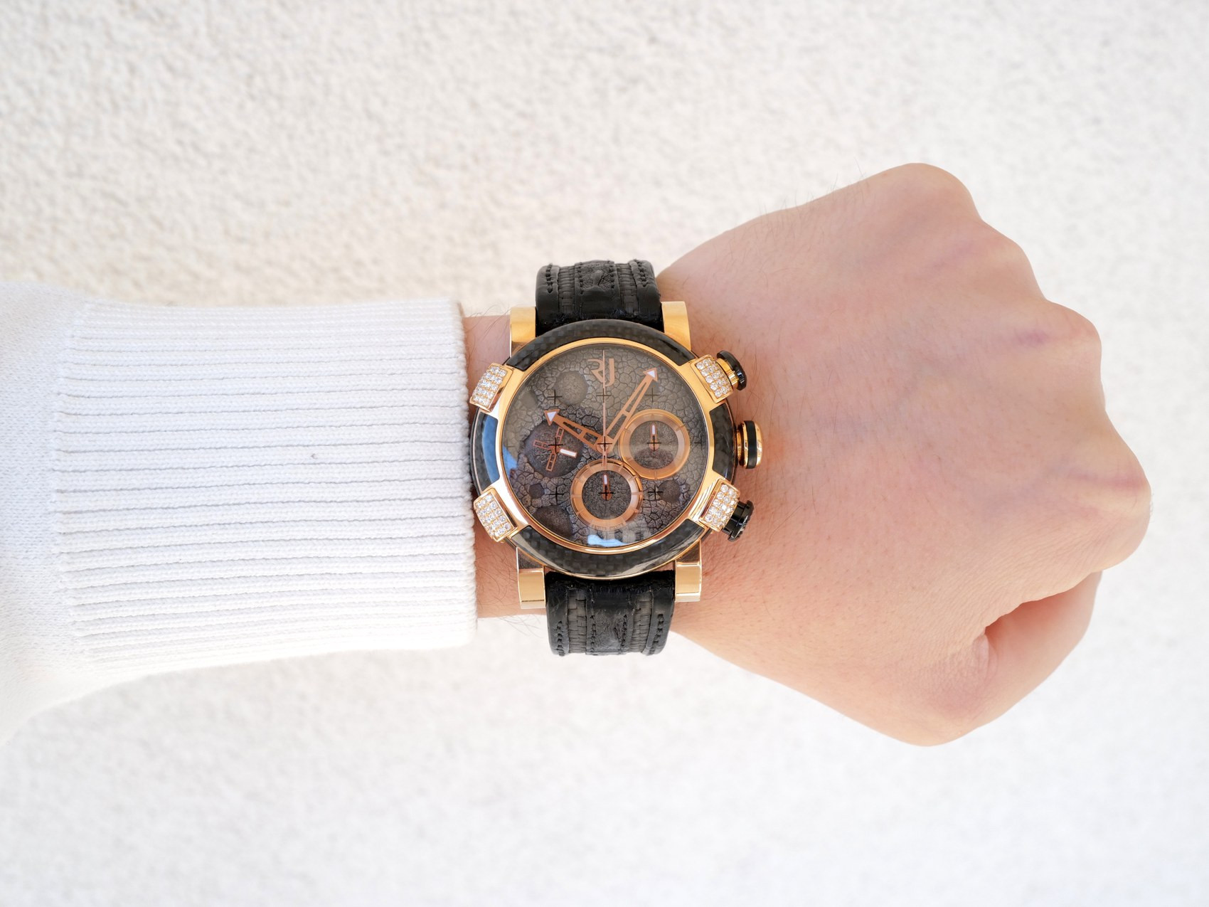 Часы Romain Jerome Moon Dust DNA Chronograph 18K Rose Gold Diamonds Lunar Grey Dial Carbon Bezel 46