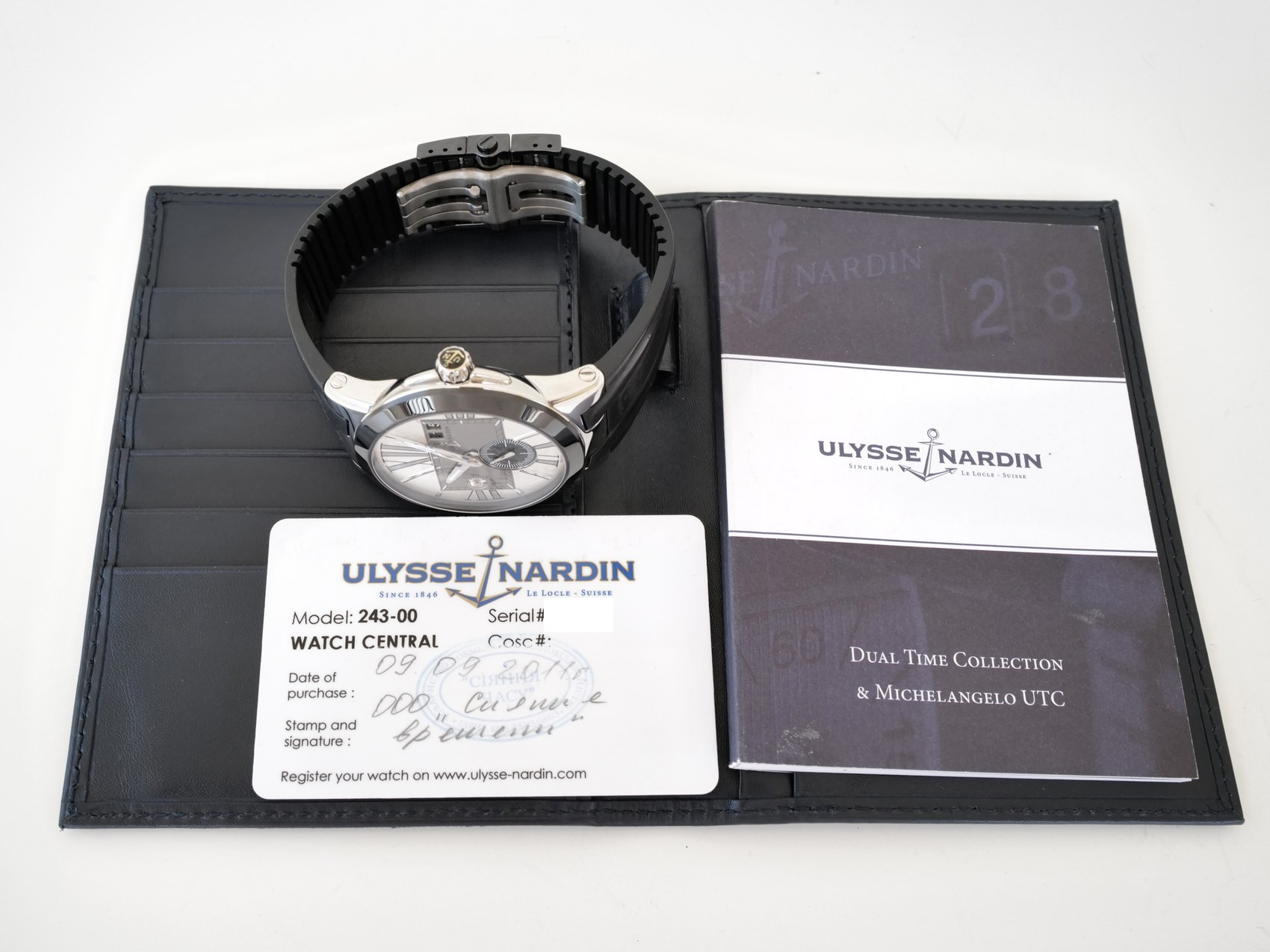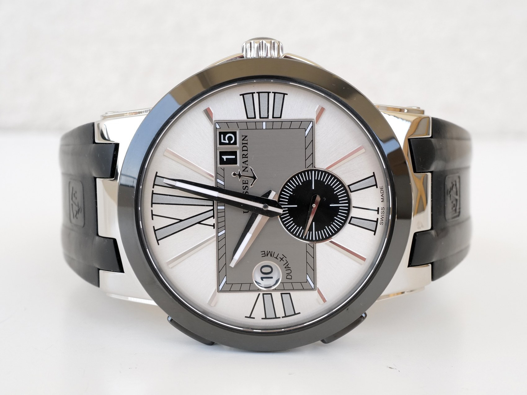 Годинник Ulysse Nardin Executive Dual Time Black Rubber Strap Silver Dial 43
